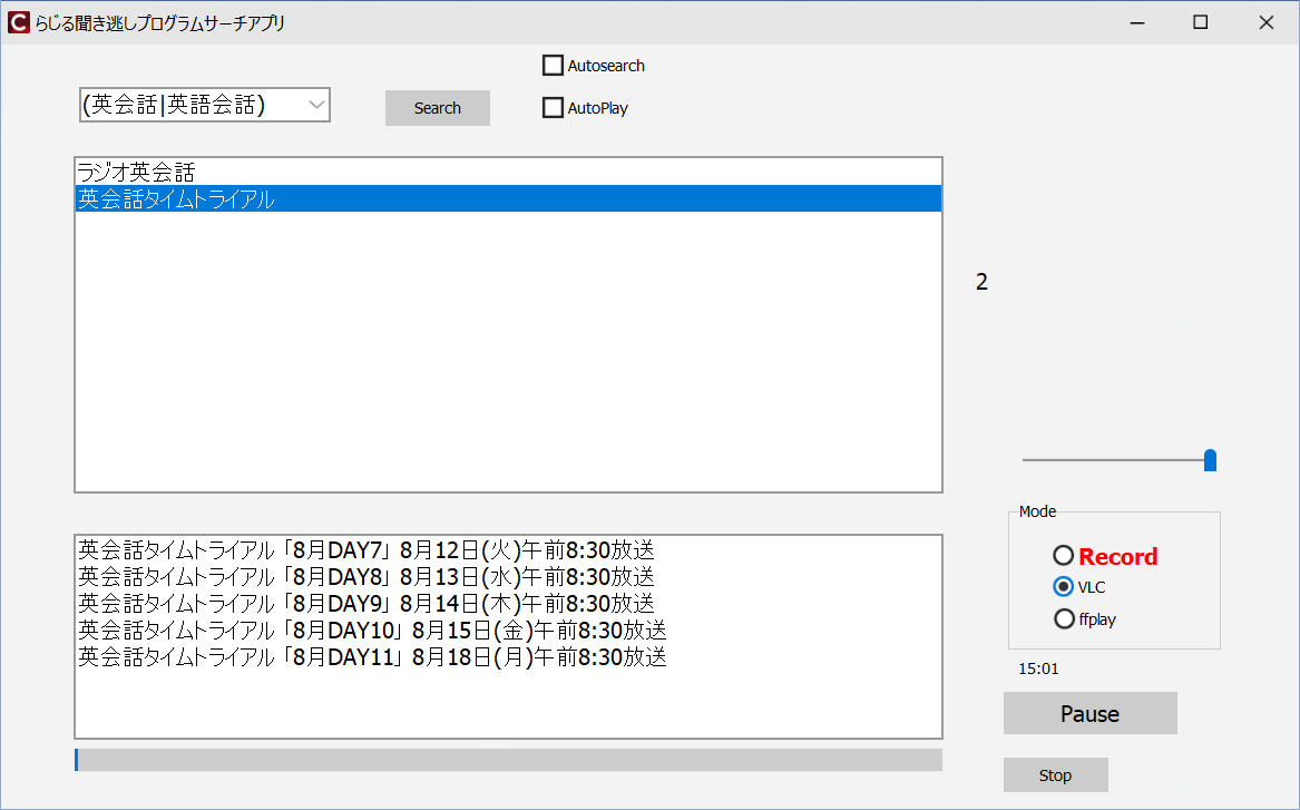 英会話タイムトライアルならば、series_side_id=8Z6XJ6J415,corner_site_id=01ということが簡単に分かります。これを使って、bashスクリプトの方を書き換えて…..。なんてことをやるくらいならば、サーチアプリの方で、”英会話タイムトライアル”をサーチしてください。英会話で検索しても大丈夫なはずです。