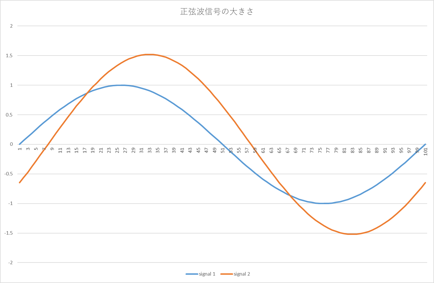 例えば、二つの信号を計測した結果が下図のようであったとする。