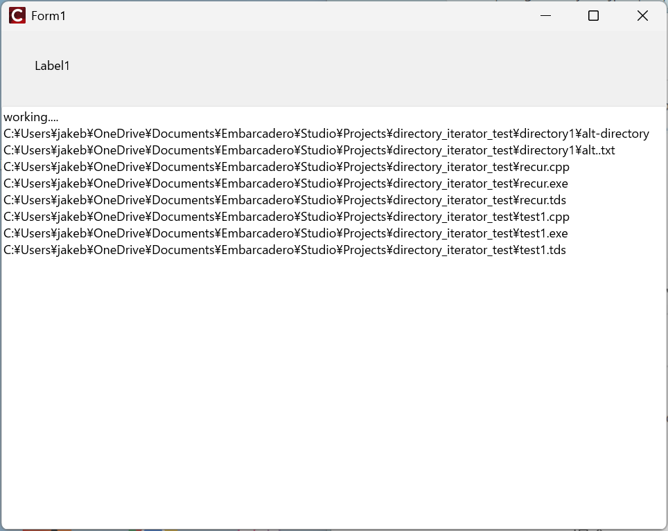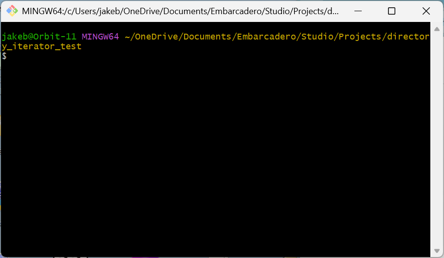 jakeb@Orbit-11 MINGW64 ~/OneDrive/Documents/Embarcadero/Studio/Projects/directory_iterator_test