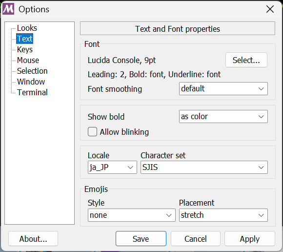 漢字コードを合わせておこう。上記のタイトルバーを右クリックして、