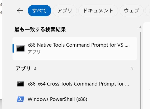 warning二つが気に入らないですが、まあ昔のUnix上のcc(gccでもない)とは違うからしょうが無いですかね。Microsoftのコンパイラにも食わせてみましょう。”m$c”というフォルダーでも作って、中にhello.cを置き、フォルダーを選択した上で、右クリック”パスのコピー”を選択しておきます。検索ウインドウから”x86”とか入れて、