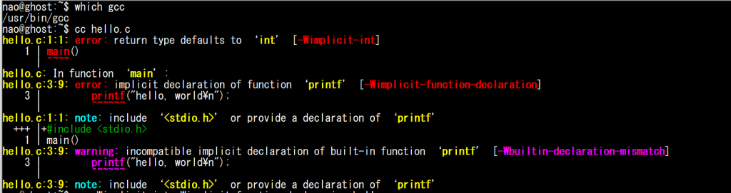 警告 W8065 hello.c 4: プロトタイプ宣言のない関数 'printf' の呼び出し (関数 main )