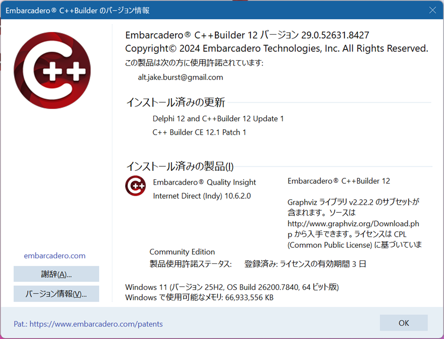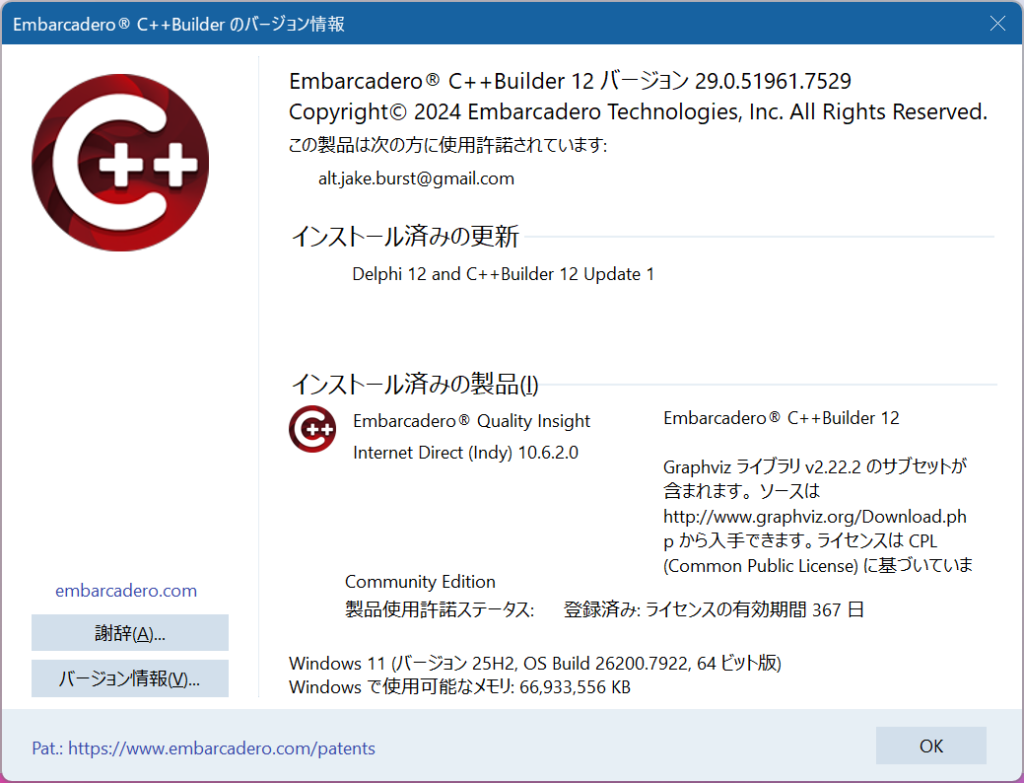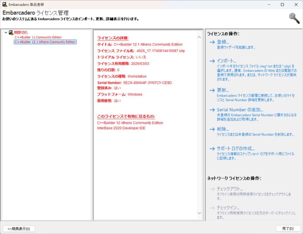 C++ Builder CE ライセンス更新のころあい