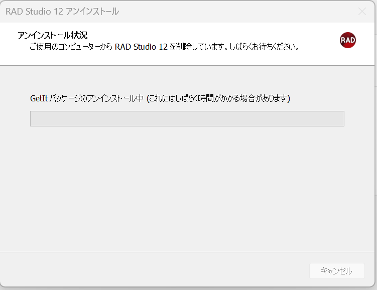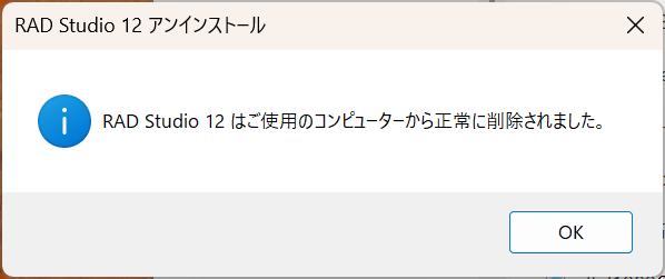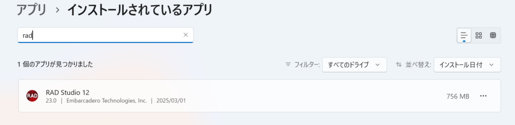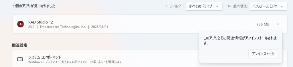 設定のインストール->インストールされているアプリから”radstudio”等を検索、