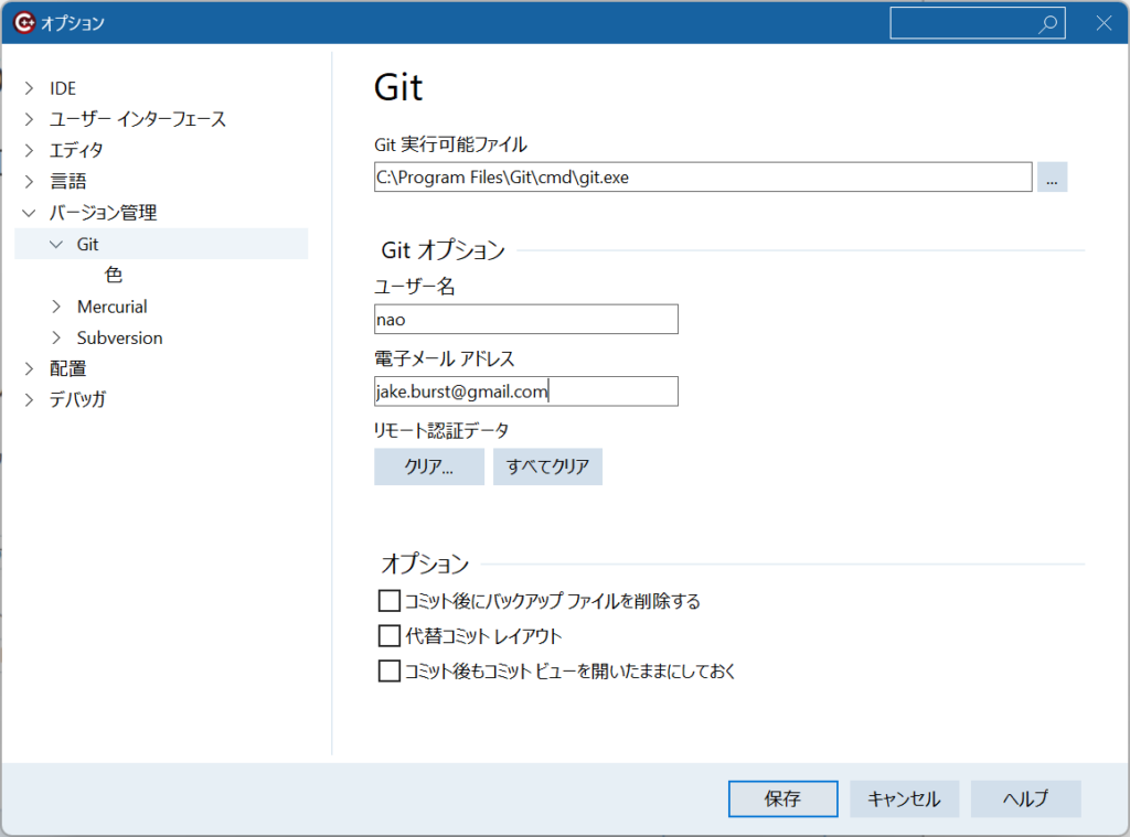 Gitをクリックして、インストール済みのGit for Windowsのバイナリを指定