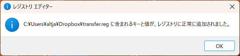 patchのreadmeが表示されて、IDEが再起動されればおけ。さきほどセーブしたエクスポートファイルをregeditでインポート。
