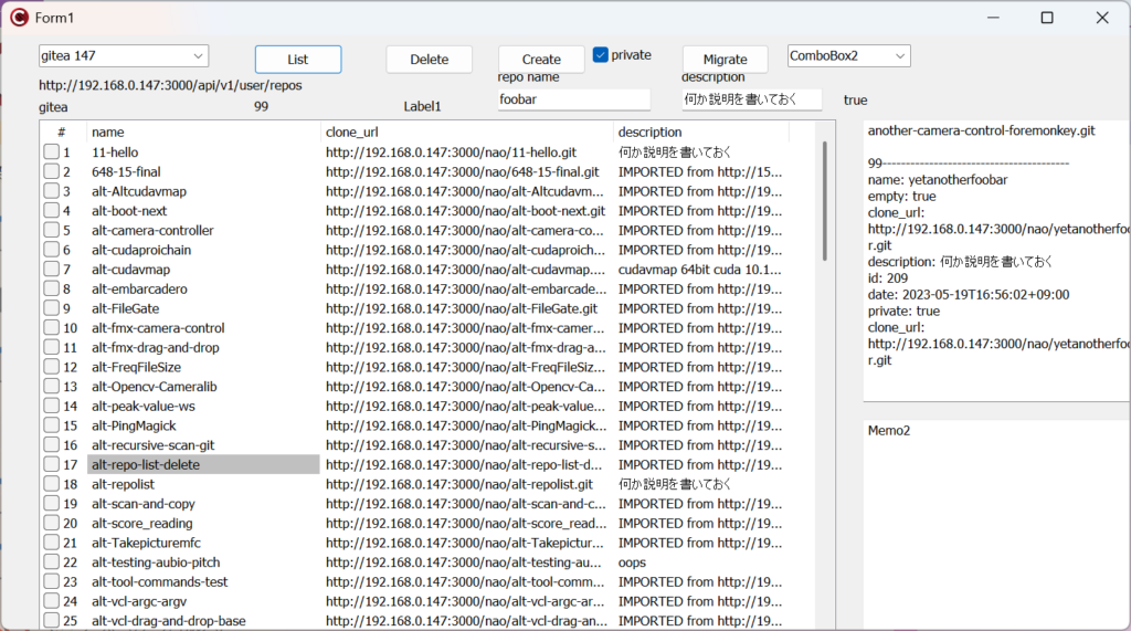 localなGiteaサーバーのレポジトリリストが取れましたので、おけですね。rmmについては、以下の記事等を参照してください。