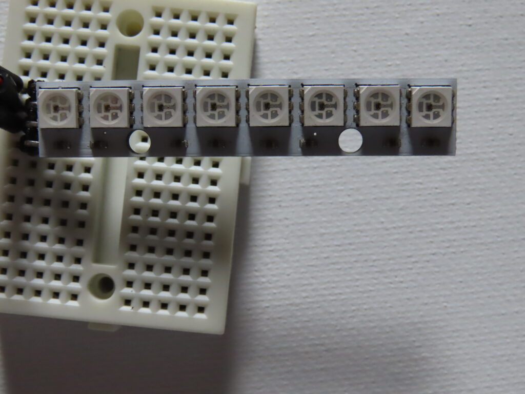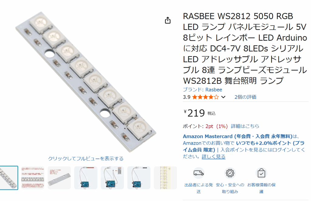 今回は上図の8素子直列のWS2812B素子を使います。amazonだと、