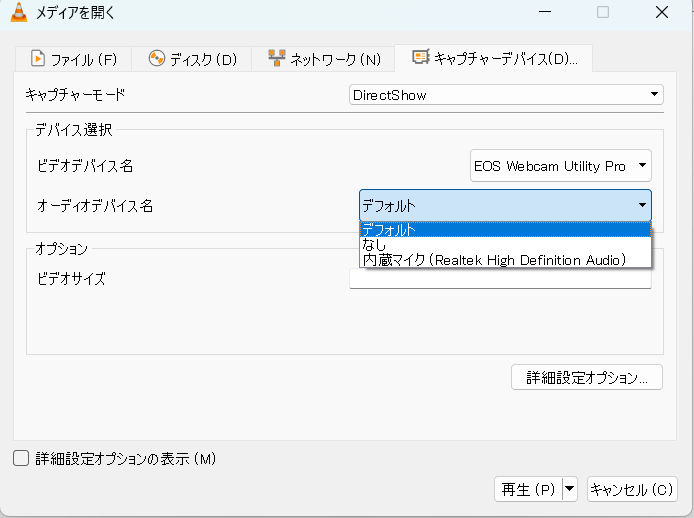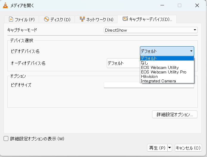 動いているようですね。VCL Playerからは、キャプチャーデバイスを選択すると、