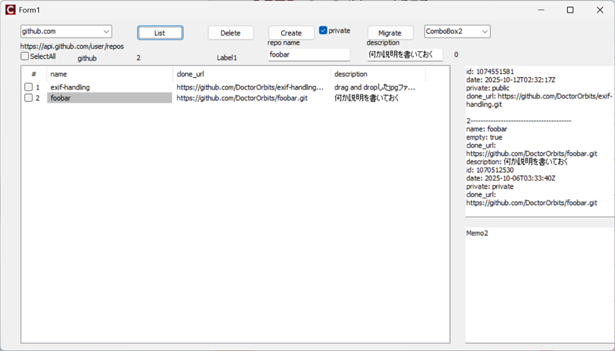 GitHUb->Giteaの移行をやってみましょう。まずGithubのレポジトリリストを表示します。