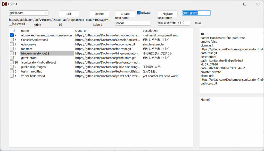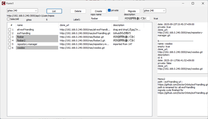 何回か取り上げている拙作のユーティリティですが、特にMigrate時に便利なrepository全選択のチェックボックスを足したものをbuildしました。さらにvectorのバイナリには含まれていないGitCommandプラグインの速攻版(省力型)を合わせてzipしたのでご興味のある方は、以下からダウンロードしてください。さらに任意のGitサービスからGithubへの移行はAPIからはできないことが判明したので、移行先はGiteaのみに限定しました。(前はGithubへもできていたんです。悲)