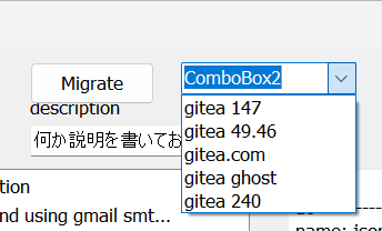 ここで、4番目の”Migrate”ボタンの右側のComboBoxをプルダウンして、gitea 240を選択。Migrateボタンを押した後左のComboxの設定をgitea 240に切り替えてから、“List”すると、