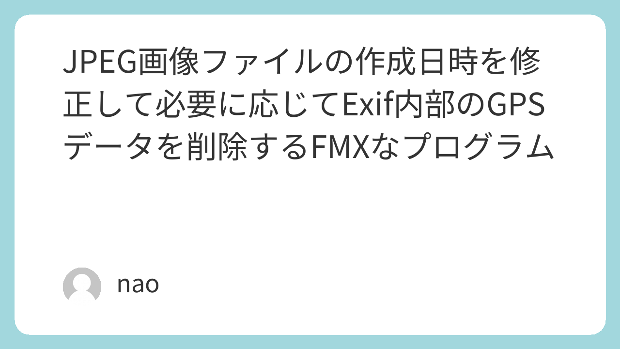 上記前記事で紹介したプログラムをD&D対応にします。既にフォームは提示済みなので、Unit1.hとUnit1.cppを提示します。他にexif.cppとかexif.hが必要です。(自分で修正を加える必要があります。)