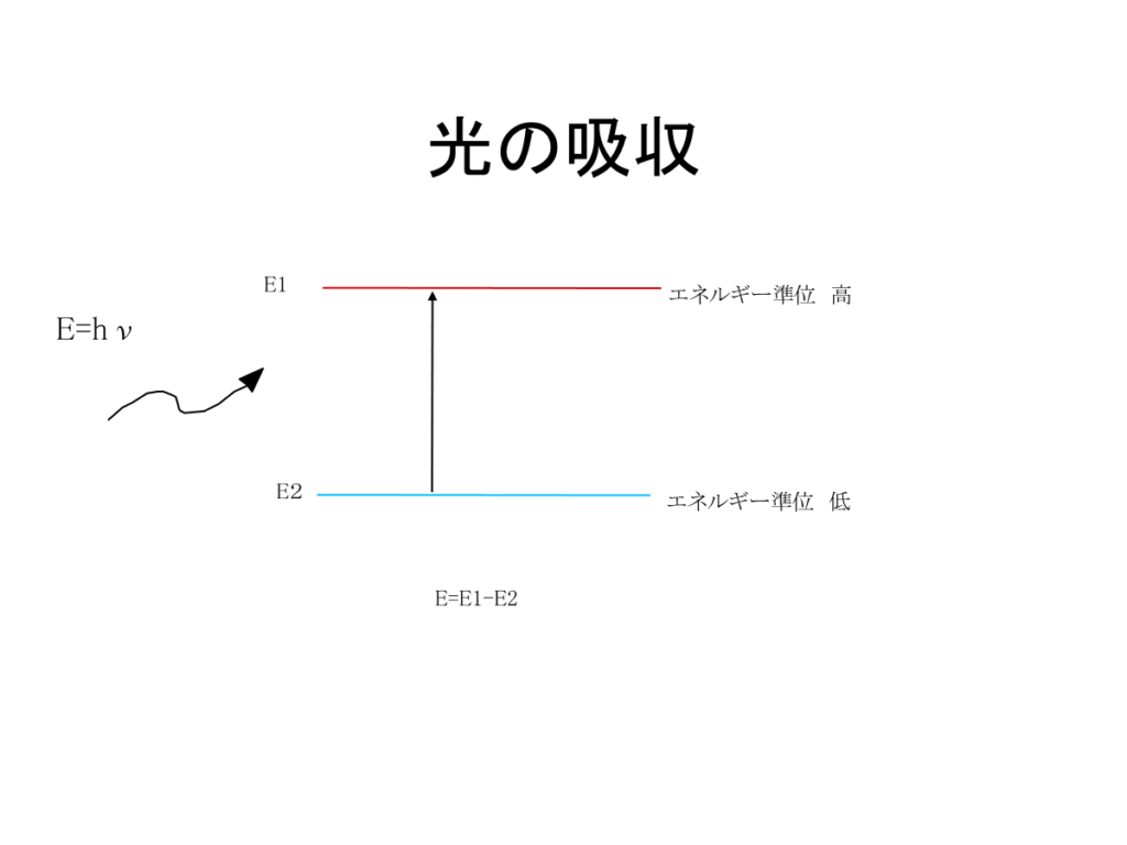 電子がE2に在る状態で、外部から光などが照射されると、そのエネルギーを吸収して、電子はE1に遷移します。これらが同時に起こることがあります。それが、