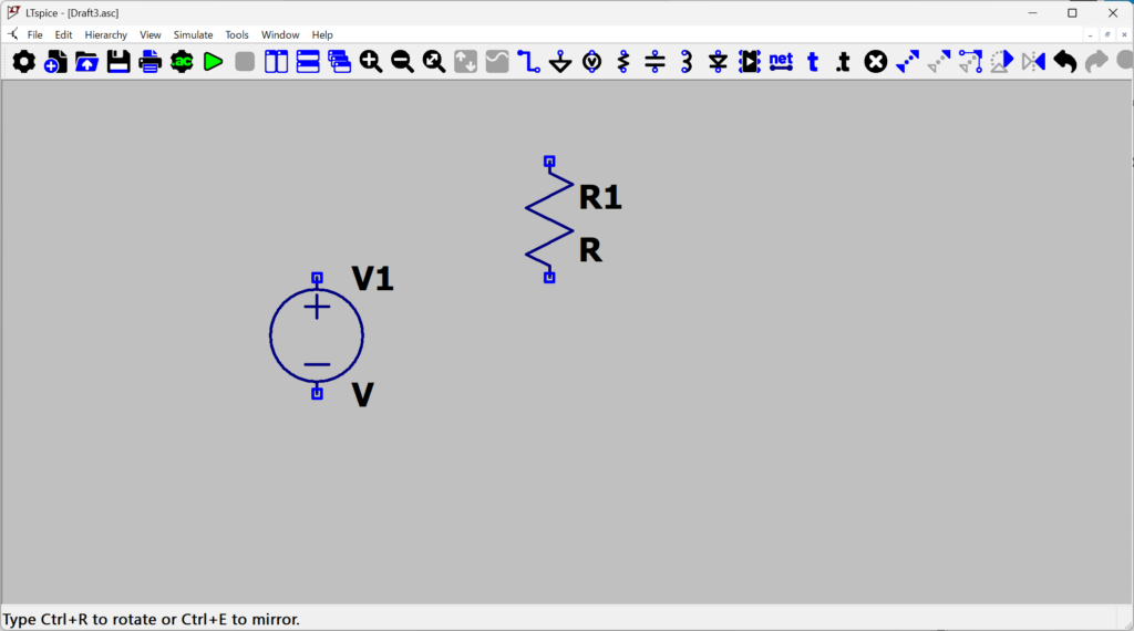 とりあえず、こんな感じです。それぞれの素子のパラメーターは、素子上で右クリック。