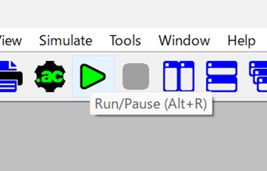 シミュレーションを開始。下図の緑の矢印をクリックないしはAlt+R。