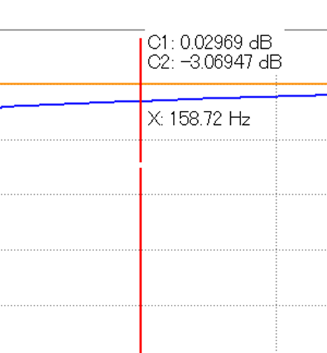 ゲインが-3dBになるのは、上図のように158.72Hz近辺ですね。合っています。