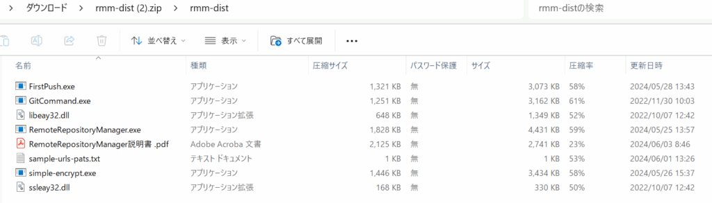 等となります。この内容で、noenc-urls-pats.txtとしてrmm.exeと同じ階層に保存します。以前の記事で作ったGithubの場合は、