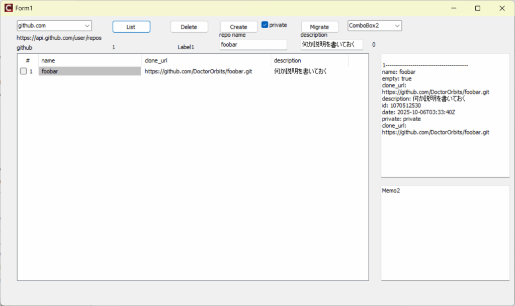 ですが、ここでidとpatを実際のものに置き換えます。具体的には、localip上のgiteaだと、baseurlがhttp://192.168.0.240:3000/api/v1で、idがnao、PATがe98dec9222a5948f4a7a30643b4e162090axxxxxなので、エントリーは、