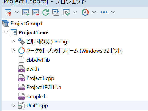 こんな感じですかね。32bit版なので、cbbdwf.libを組み込みます。前記事参照のこと。
